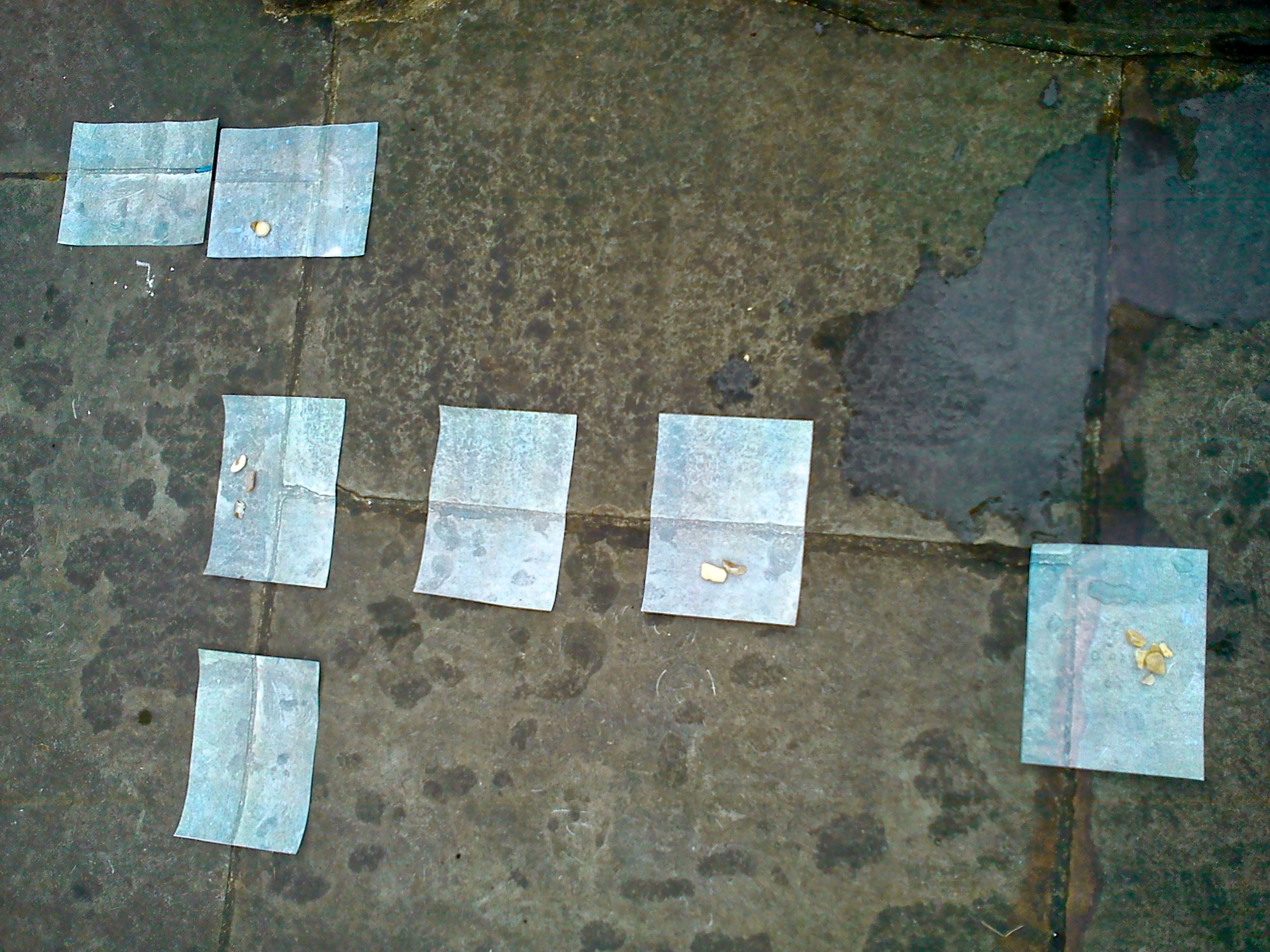 Alisa and myself tried to make and use a 1:1 scale map in a piece we made with Nauen Park and Li Yeun Jing called Invisible Territory. For part of this work, Alisa photographed the pavement of a small walled garden and printed out the entire pavement at 1cm:1cm in a series of photos; I then had to put them together again on site, matching each photo to the piece of pavement it showed (the pictures here are from that piece). Passers-by asked me what on earth I was doing and some of them understood straight away that it was an impossible task, as the environment had already changed since the pictures were taken only a week earlier – at this level of detail, leaves, rain, footprints etc had altered the landscape. Plus the photos were blowing away, getting wet and being trodden on.